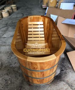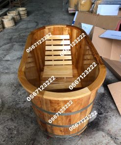 Đặt mua ngay Bồn tắm oval Gỗ Pơmu bo viền cao cấp