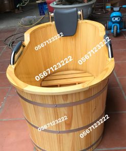 Đặt mua ngay Bồn Tắm Ovan gỗ thông có tay nắm gối tựa cao cấp