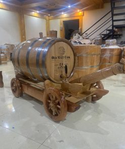 Bom Đựng Rượu 50Lit Kèm Xe Pháo Cao Cấp – Thùng gỗ sồi 50 lít kèm xe pháo